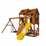 Детский городок изготовлен из северной древесины хвойных пород, обработанной безопасной декоративно-защитной пропиткой. Технология значительно увеличивает срок службы конструкций, повышает прочность древесины, защищает её от гниения и грибков. Обработка придаёт дереву приятный оттенок, проявляет и подчёркивает его текстуру. Используемая пропитка не содержит токсичных компонентов, экологична и абсолютно безопасна для ребёнка. Состав прошёл санитарно-эпидемиологическую экспертизу в Центре гигиены и эпидемиологии в г. Пятигорску.
