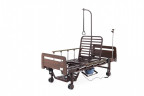 Функциональная кровать Мед-Мос E-45A (MM-5628H-03) для ухода за больными и инвалидами. Рама изделия выполнена из стального профиля и покрыта ударопрочной эпоксидной эмалью. Торцевые ограждения (изголовье и изножье) кровати легкосъемные выполнены из ЛДСП с прорезями.