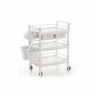 Манипуляционный стол с 2 полками и выдвижным ящиком, сделанный целиком из белого пластика*, с трёхсторонними боковыми ограждениями на полках.